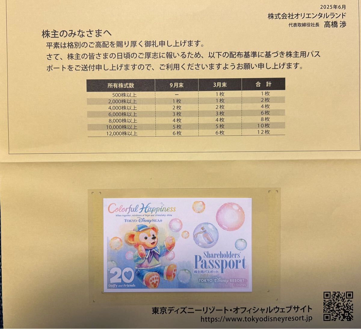 オリエンタルランド 東京ディズニーリゾート 株主優待券 1枚 有効期限2026年6月30日 送料無料
