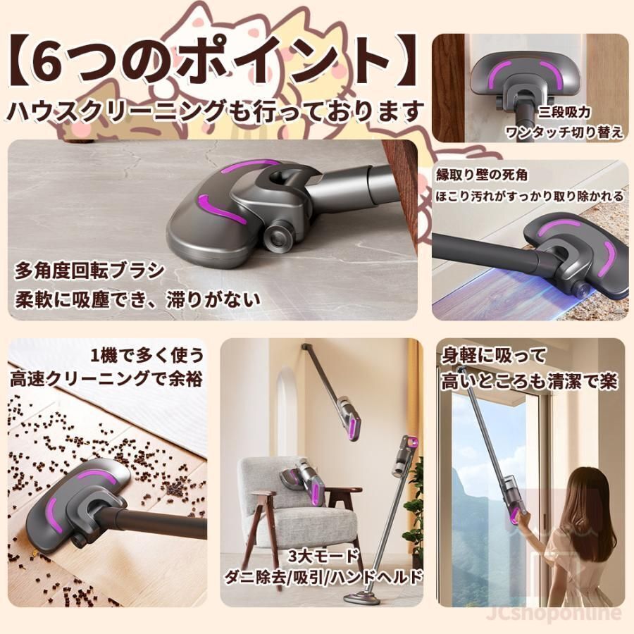 掃除機 コードレス 軽量 39000pa 充電式 強力吸引 サイクロン式 ハンディクリーナー 3WAY 多機能 USB-TypeC充電式