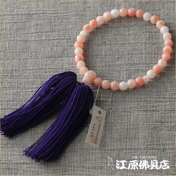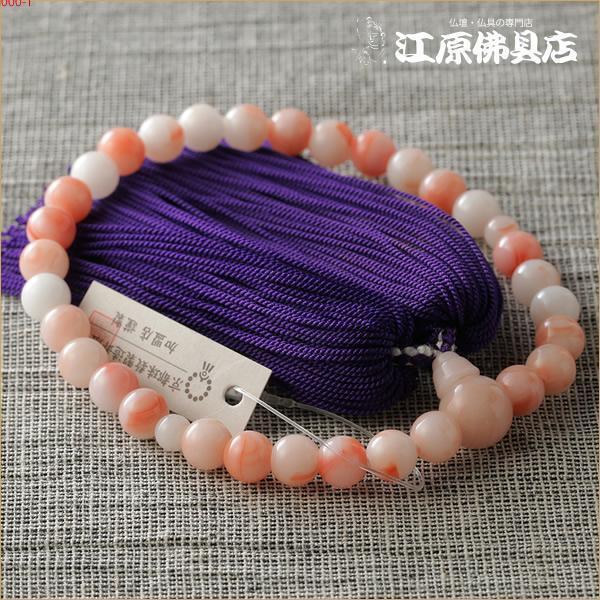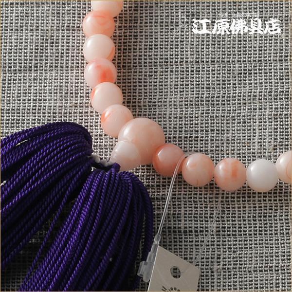[ゆうパケットOK]子供用念珠ガラス2人松(ハリピンクサンゴ)【念珠・数珠・女性】