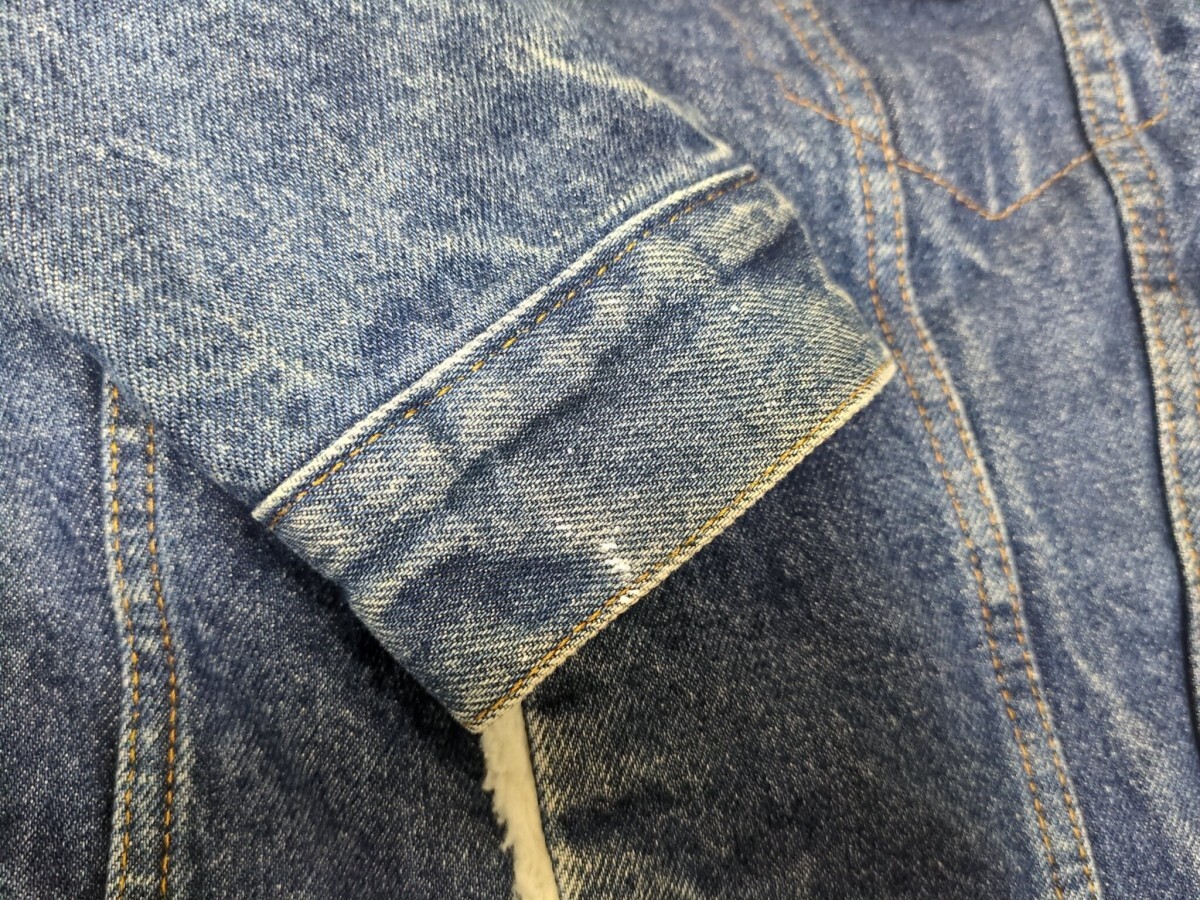 正規品です。 【肩幅】50 【着丈】62 【身幅】54 【袖丈】48 【ウエスト】 【総丈】 【股下】 【裾幅】 メンズ38R 色はインディゴ 右袖先に白汚れ |