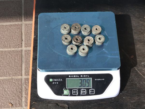 全体で7475gあります、ランダム抽出100枚で309gあったので、計算上2419枚あります