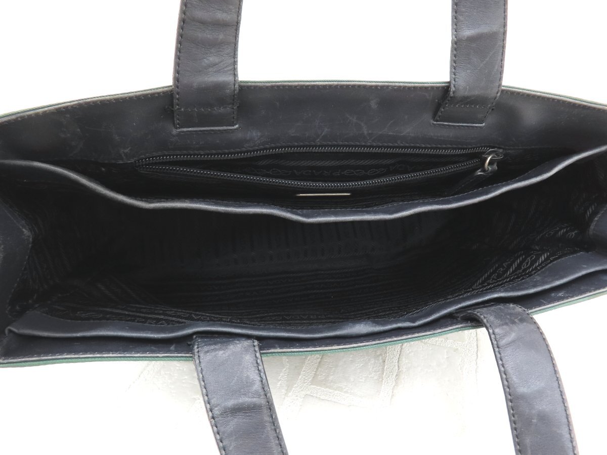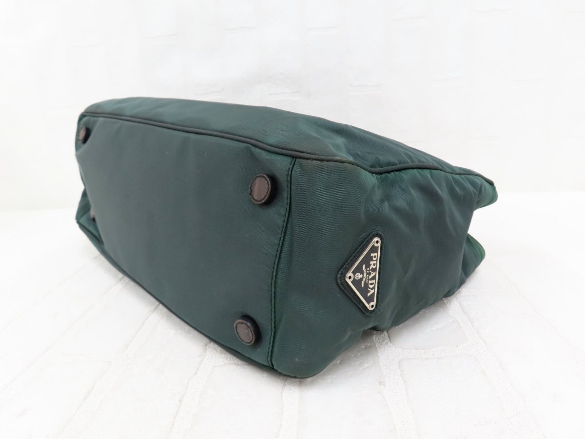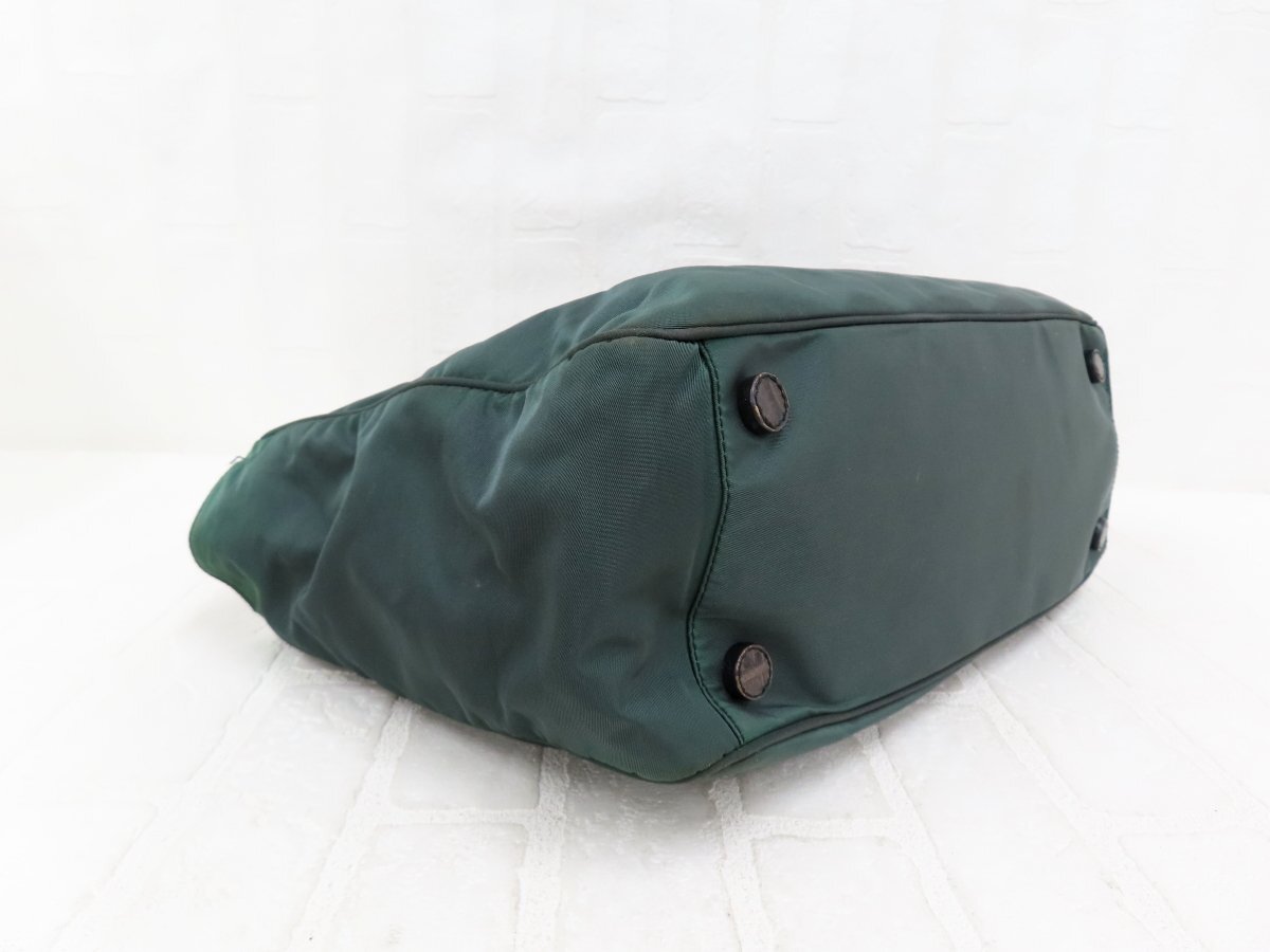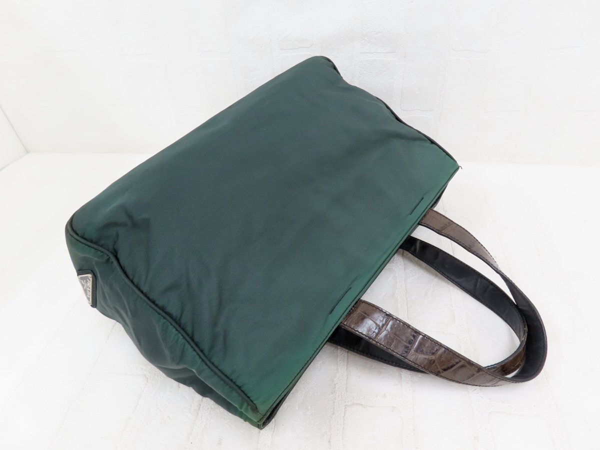 ◆美品◆PRADA プラダ◆ナイロン クロコ型押し レザー 本革◆ハンド トート バッグ◆グリーン 茶 シルバー金具◆イタリア製◆A13756
