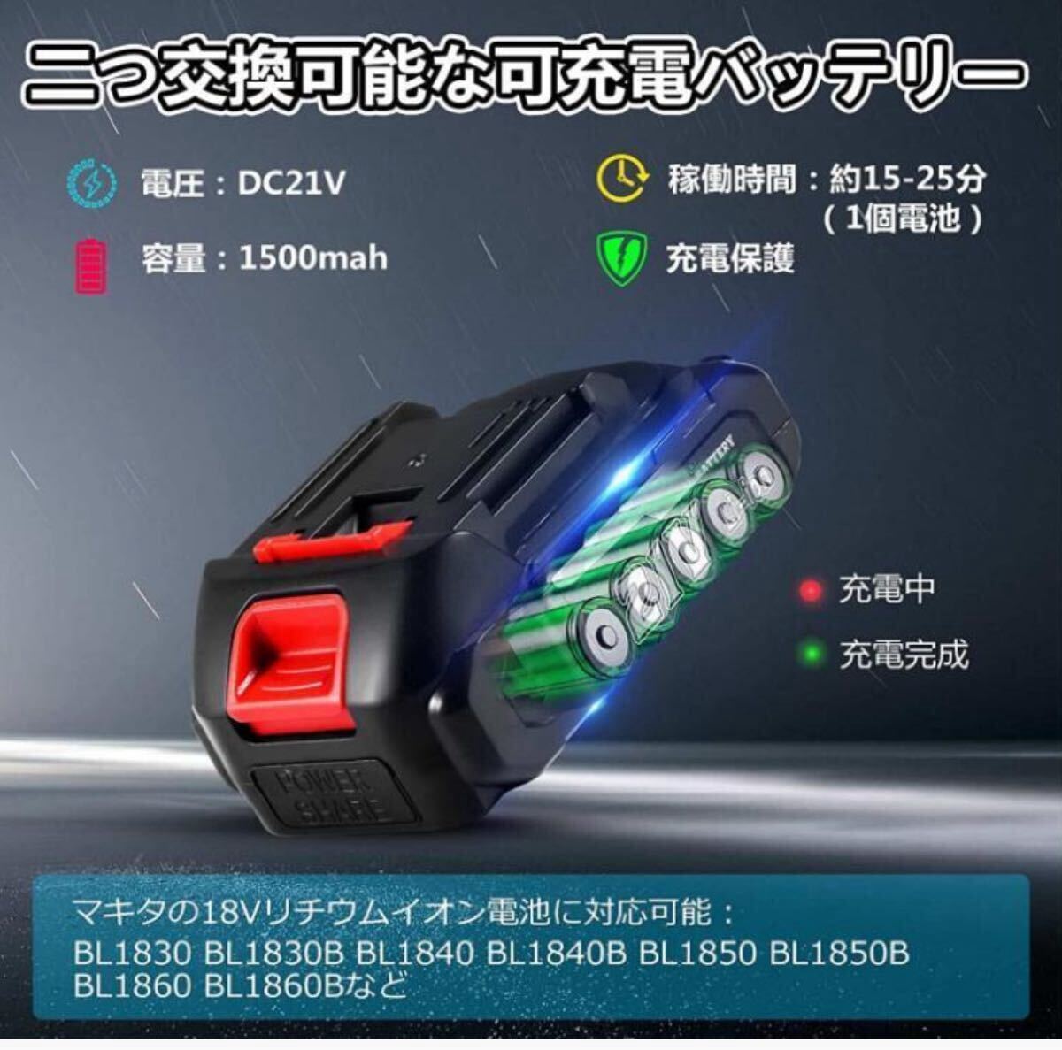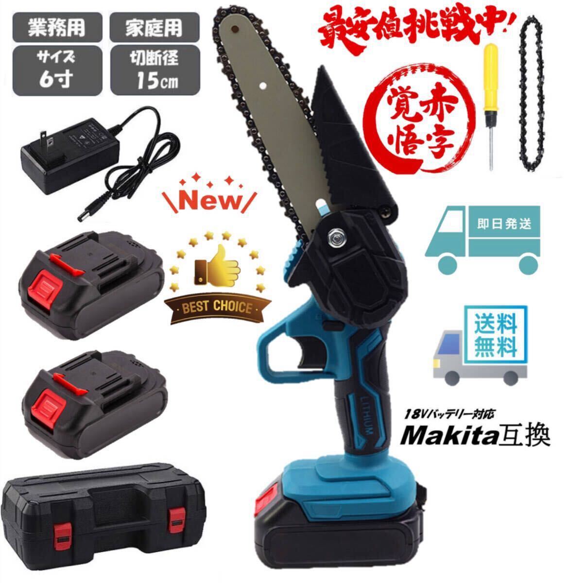 チェーンソー 充電式 電動 小型 マキタ互換 21Vバッテリー2個セット6インチ 家庭用 ポータブル コードレス 木工 電動のこぎり 収納ケース