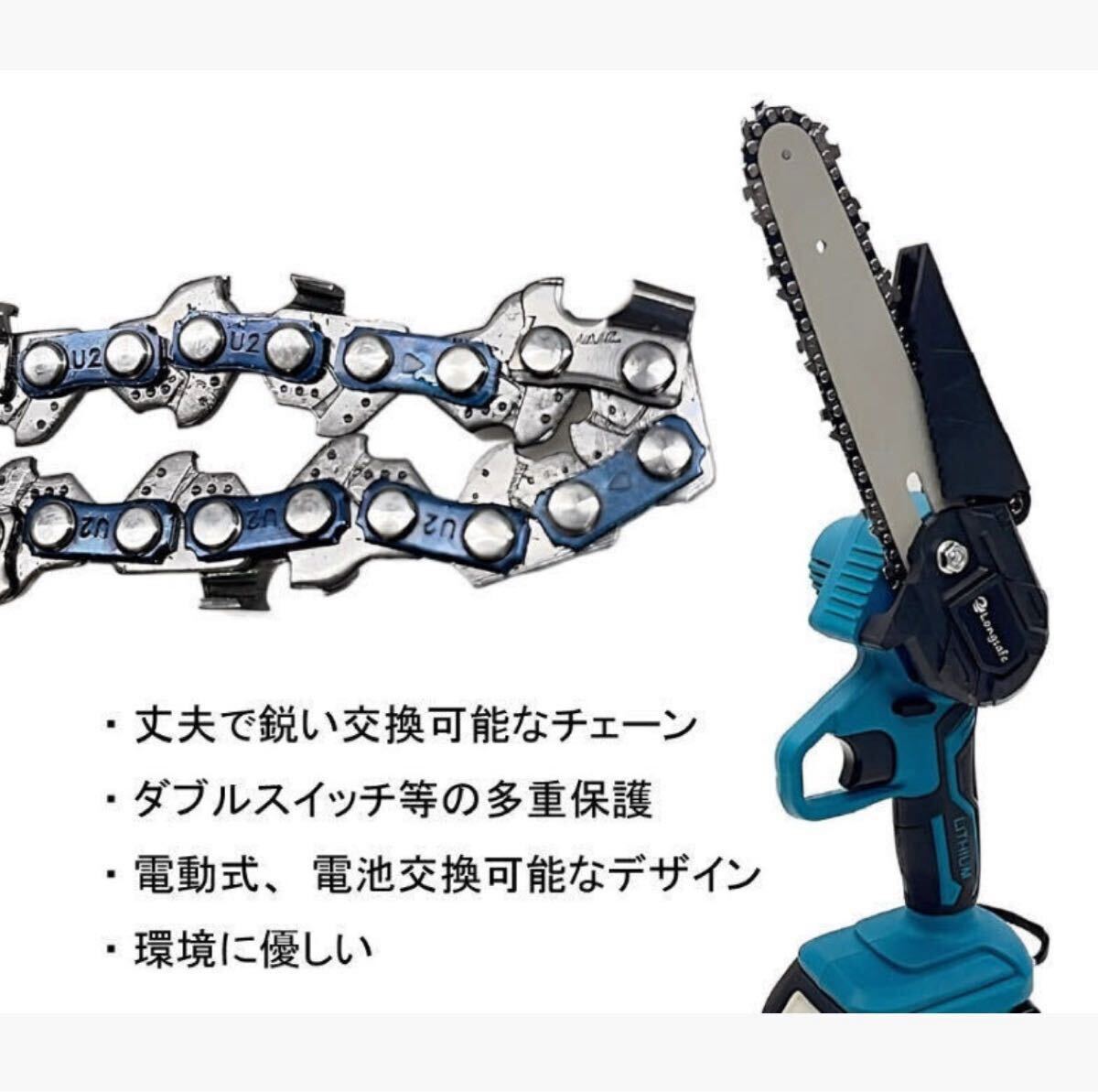 【充電式チェンソー】このチェーンソーは、スムーズな切断を確実にするために深く硬化された高品質のガイドチェーンを使用しています。