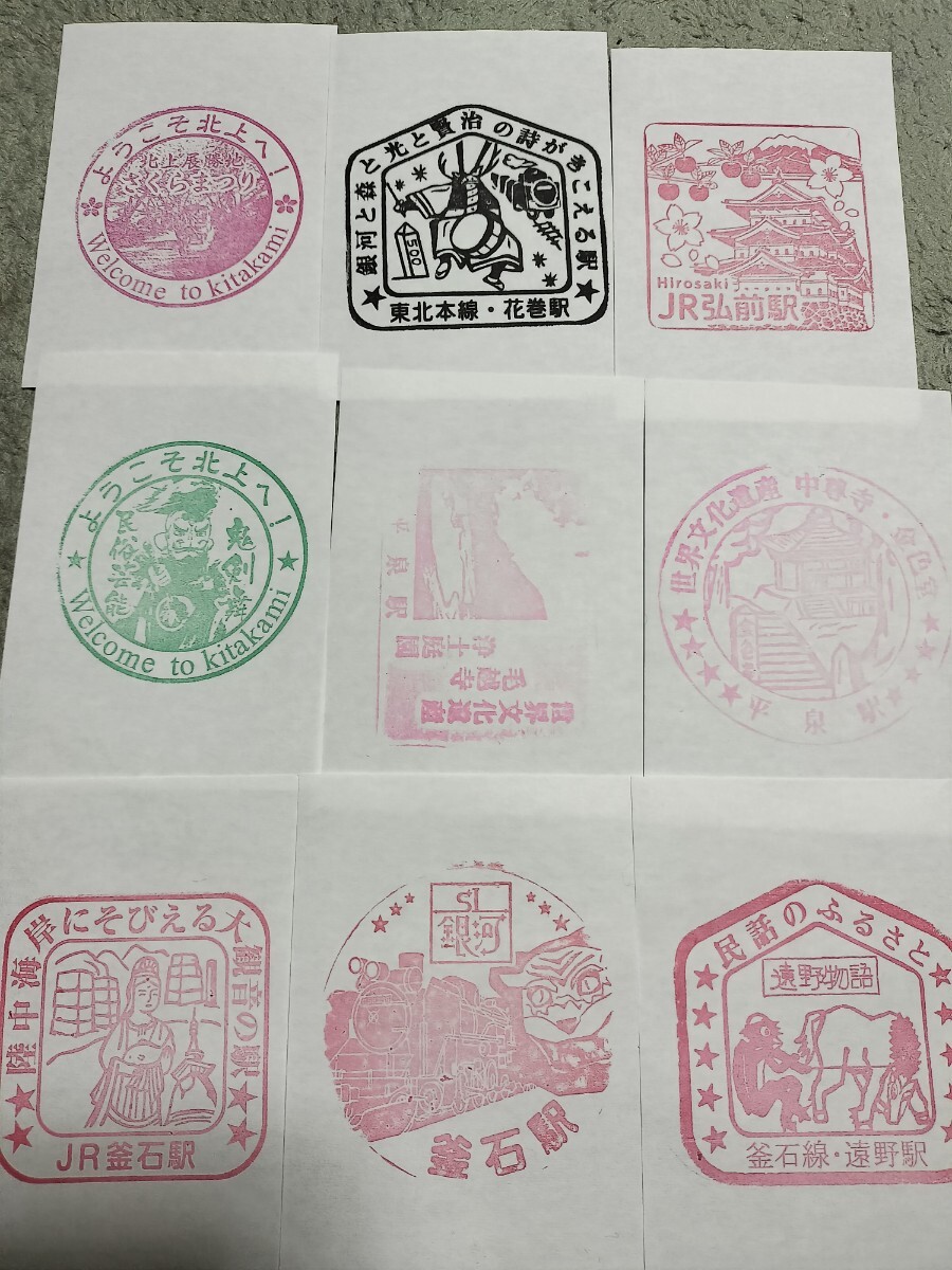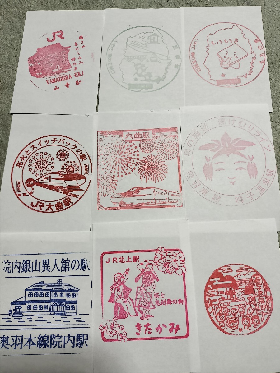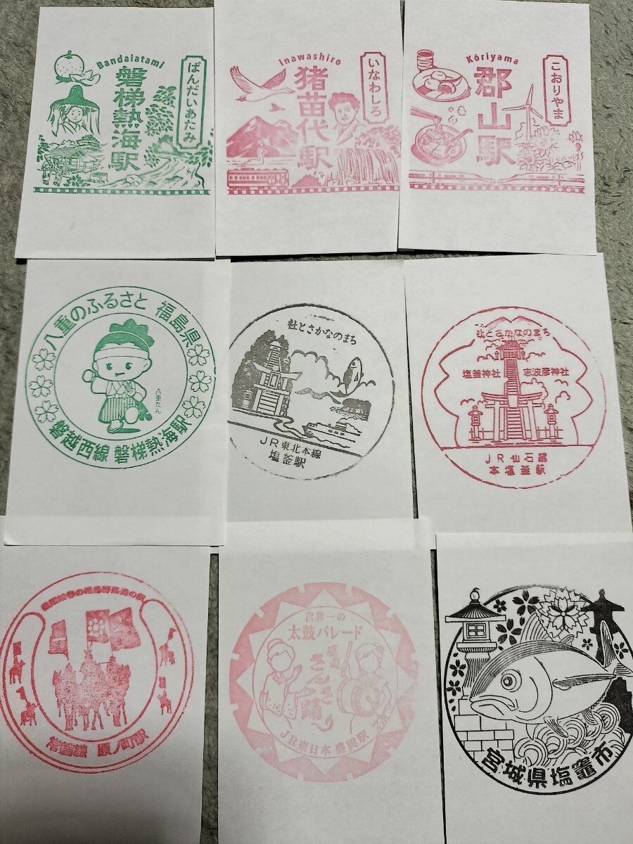 JR東日東北地区 駅スタンプ 39種 盛岡、郡山、猪苗代、本塩釜、八戸、山形、水沢江刺、山寺、大曲、北上など