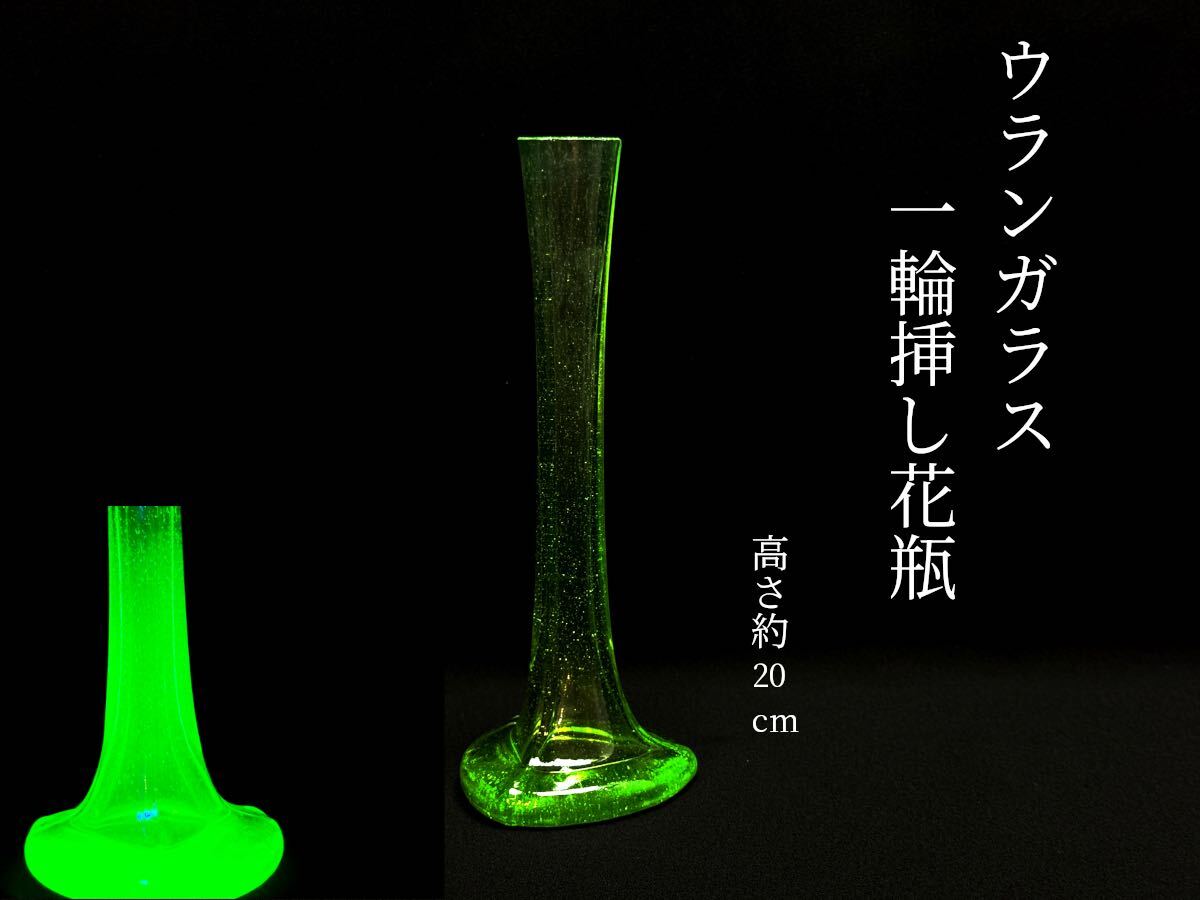 H391 ウランガラス 一輪挿し花瓶 高さ約20cm 大正レトロ 昭和レトロ 花器 アンティーク 美術品 ガラス工芸品 硝子 和ガラス 骨董 古玩