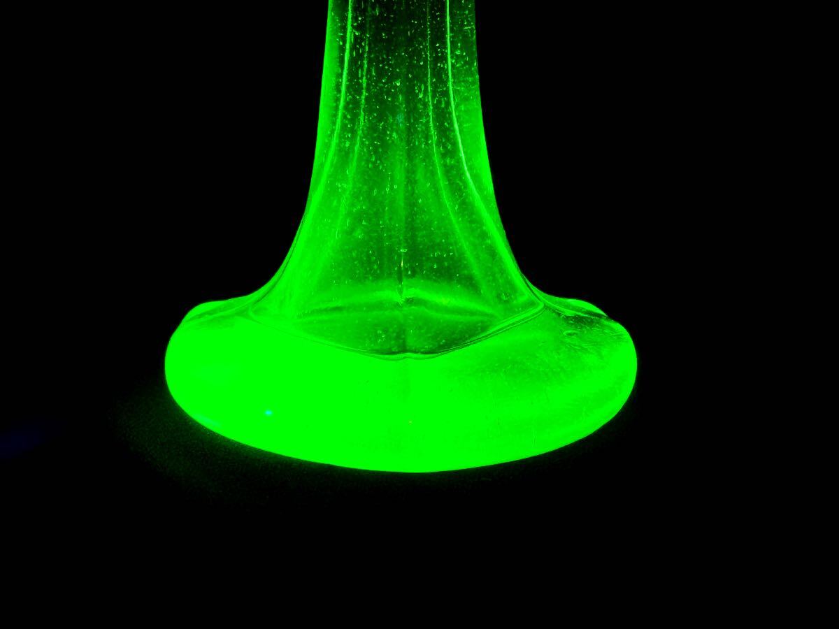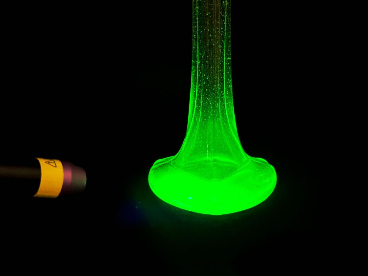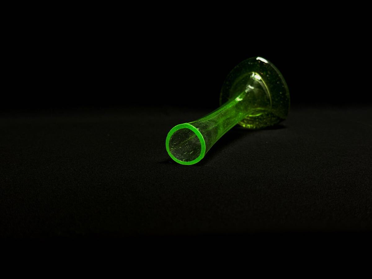 ウランガラスを証明するためにブラックライトを当てて撮影しています。