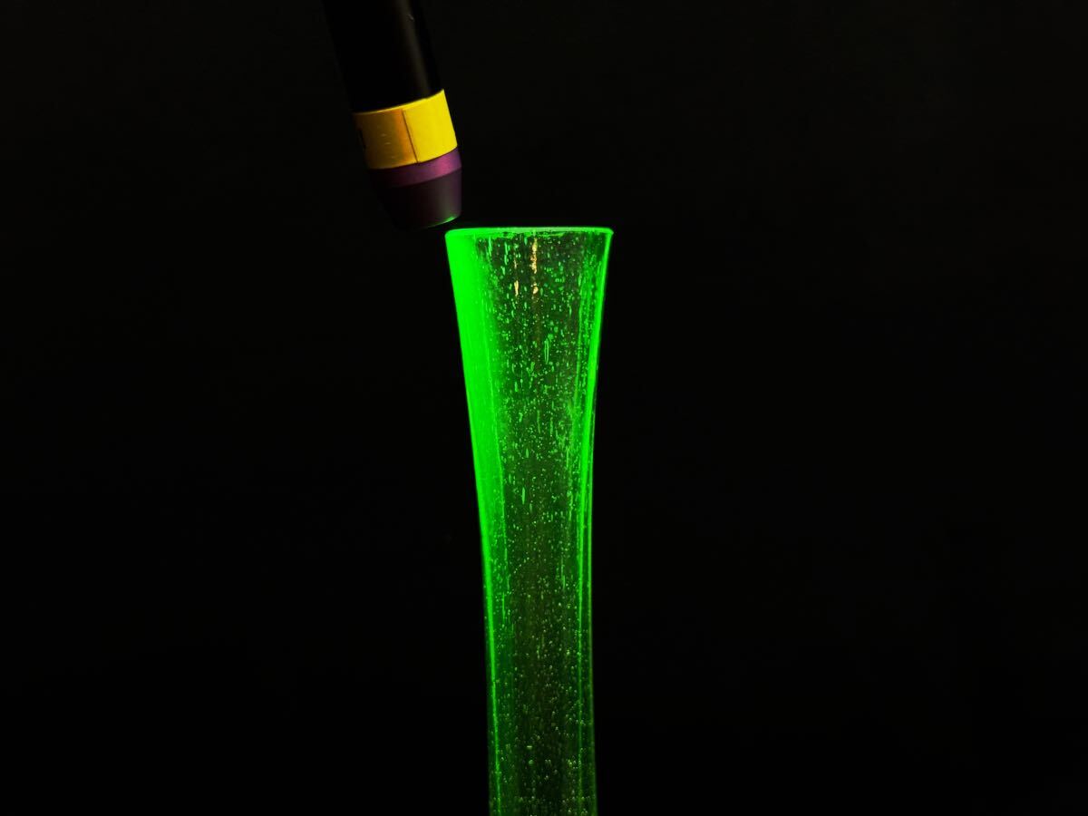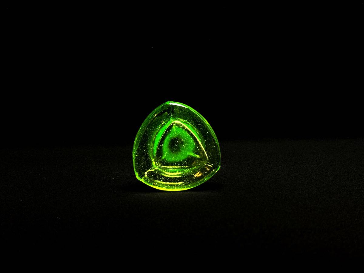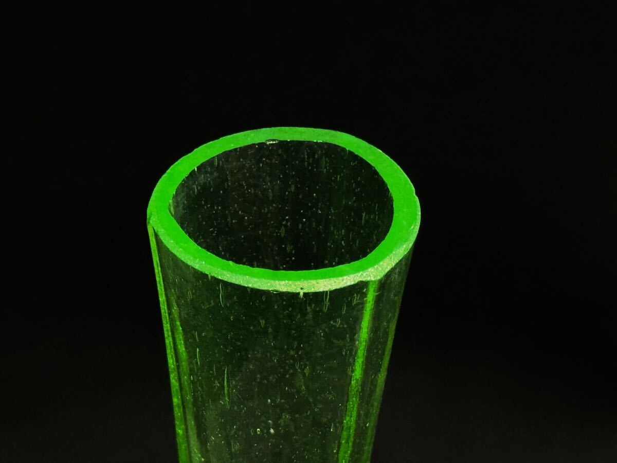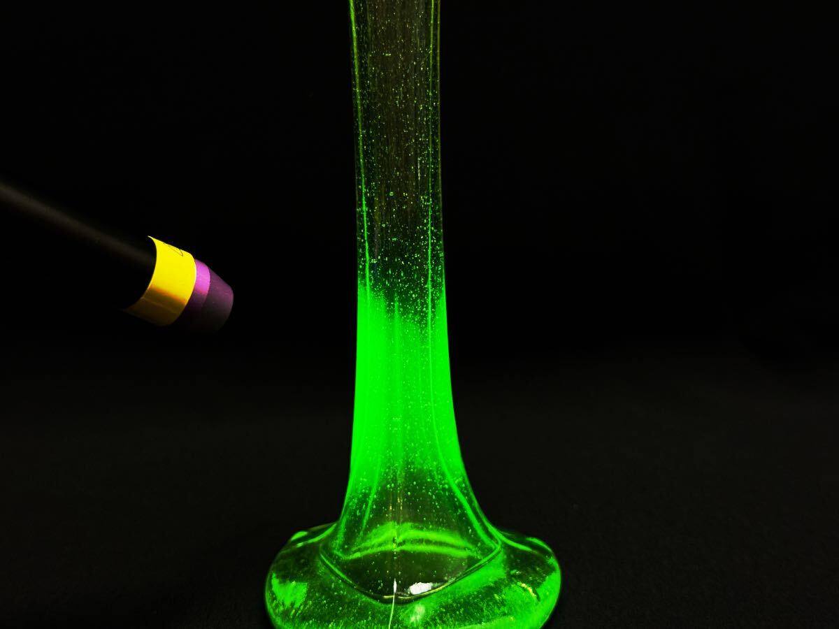 ウランガラスを証明するためにブラックライトを当てて撮影しています。