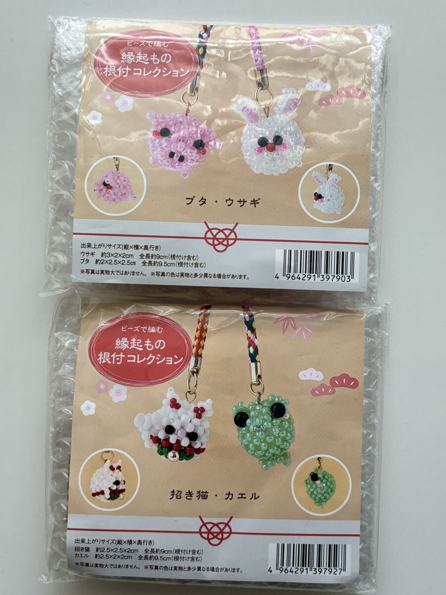 新品キット【2種まとめて】ビーズで編む縁起もの根付コレクション 手芸キット ハンドメイド ビーズ チャーム キーホルダー ストラップ
