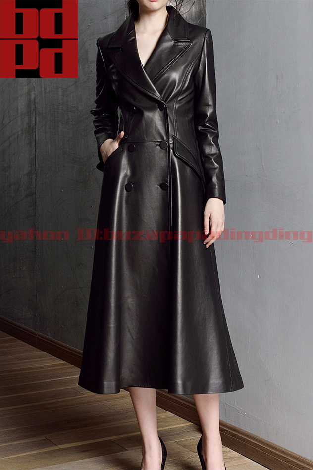ラムレザー フレンチレトロ ダブルブレスト ロングコート レディース 秋冬 レザーコート おしゃれ 大人可愛い 上品 パリジャンテイスト Z10
