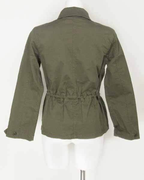 季節の変わり目におすすめの薄手ブルゾン♪ カジュアルライクなルックスで楽にお召し頂けます。 ウエストは裏側で紐を絞り、ブラウジングできるお仕立てで、 メリハリの利いたシルエットにもなります。 お袖口、裾に気にならない程度の白汚れが見られます。 着丈約61cm 袖丈54cm 肩幅39cm バスト約92cm 【サイズ】:(36) 【素 材】:(コットン97%・ポリウレタン3%) 【 色 】:(カーキ) 【程 度】:(AB) **** 12151028-003 427 005 | ||||