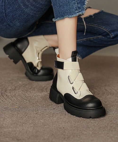 キーワード:ブーツ レディース ショート ヒール プレーントゥ ワーク 厚底 秋 冬