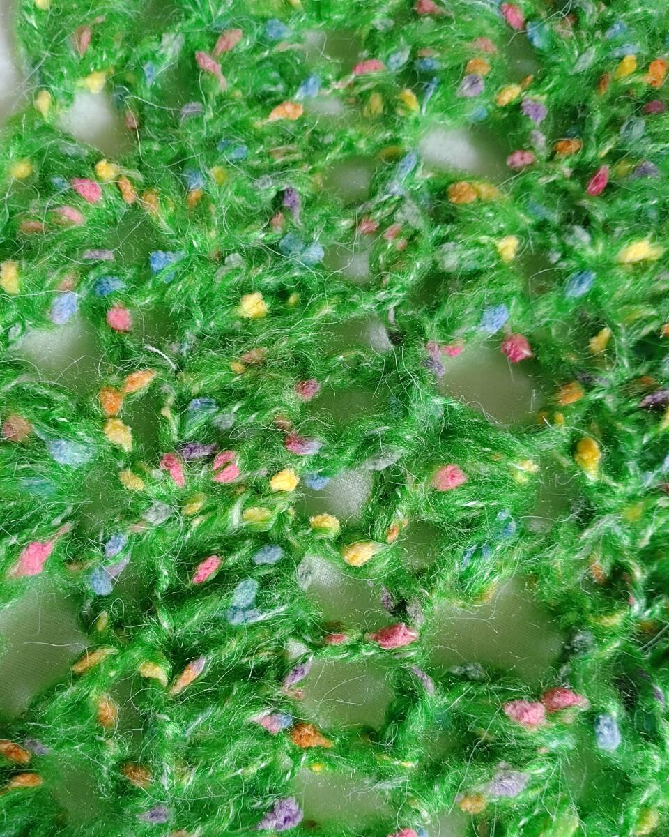 こちらの商品をご覧いただきありがとうございます。ユザワヤのロリポップガーデンという糸で編んでおります。とても可愛らしく、ポップな仕上がりになりました。