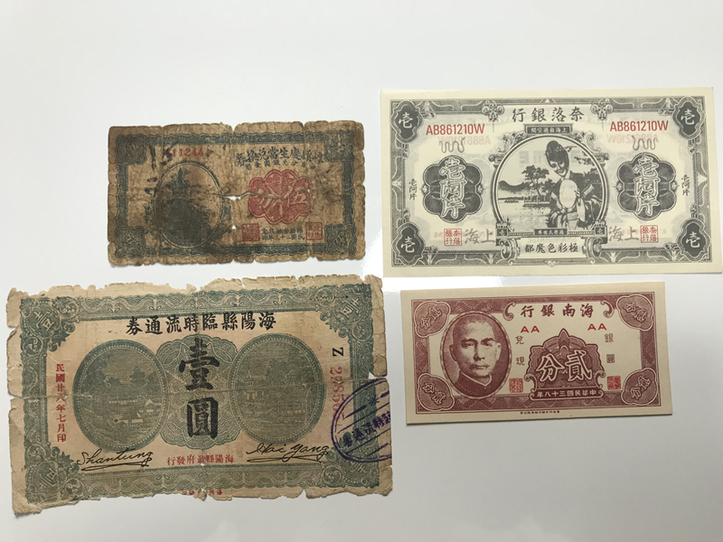 中国紙幣 4枚 海南銀行 中華民国 旧紙幣 古札 古紙幣 紙幣 貨幣 希少