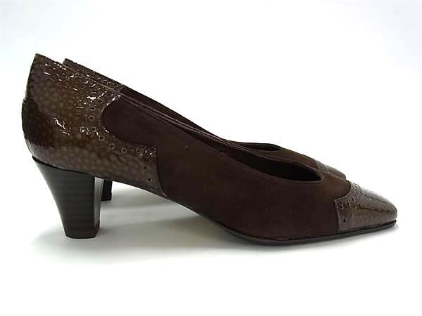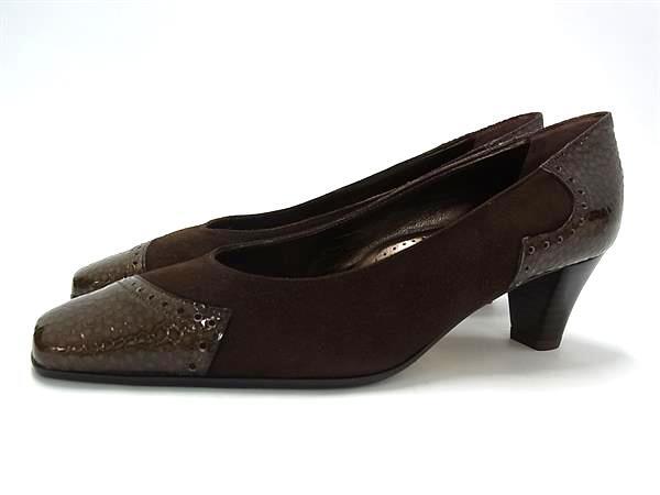 ■美品■ ROMAGNOLI ロマニョーリ スエード×パテントレザー ヒール パンプス 表記サイズ 35 (約22cm) 靴 シューズ ブラウン系 DI8278