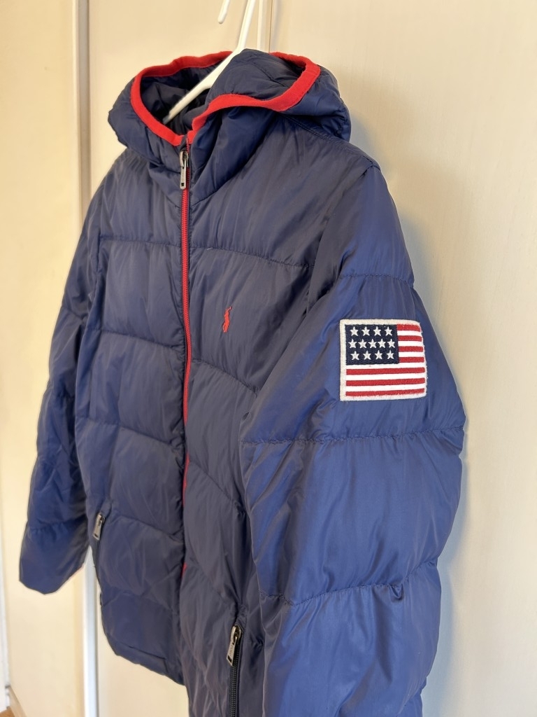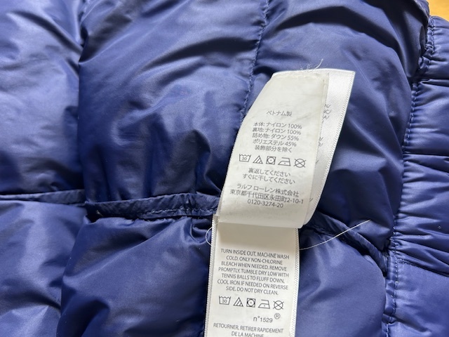 ・1~2シーズン使用したダウンジャケットです。特に目立った傷などはありませんが、中古品ですので多少の汚れがあると思います。ご理解いただいた上でのご入札をお願い致します。両サイドにポケットあります。 ・サイズ:表示サイズL(14-16)160サイズ相当 (素人採寸ですので、多少の誤差はご了承下さい。) ・素 材:本体ナイロン、詰め物ダウン55%、ポリエステル45% |