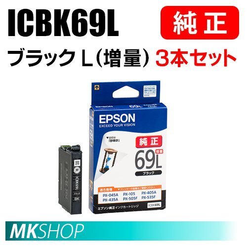 EPSON 純正 インクカートリッジ ICBK69L ブラック 増量 3本セット(PX-045A/046A/047A/105/405A/435A/436A/437A/505F/535F/S505)