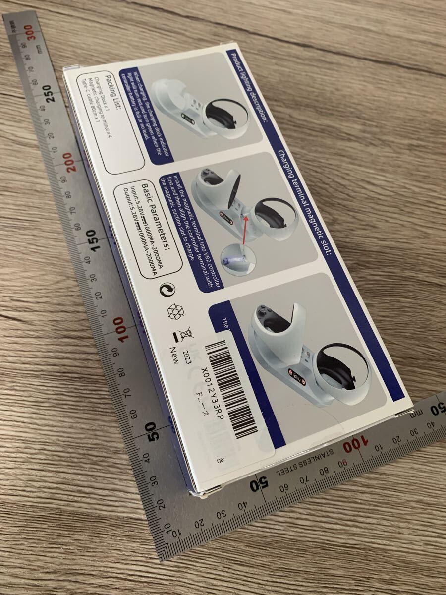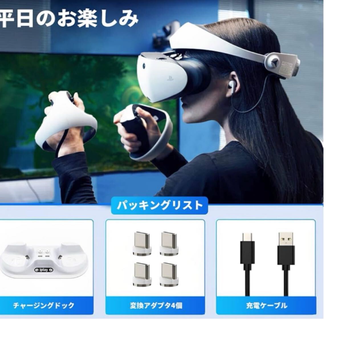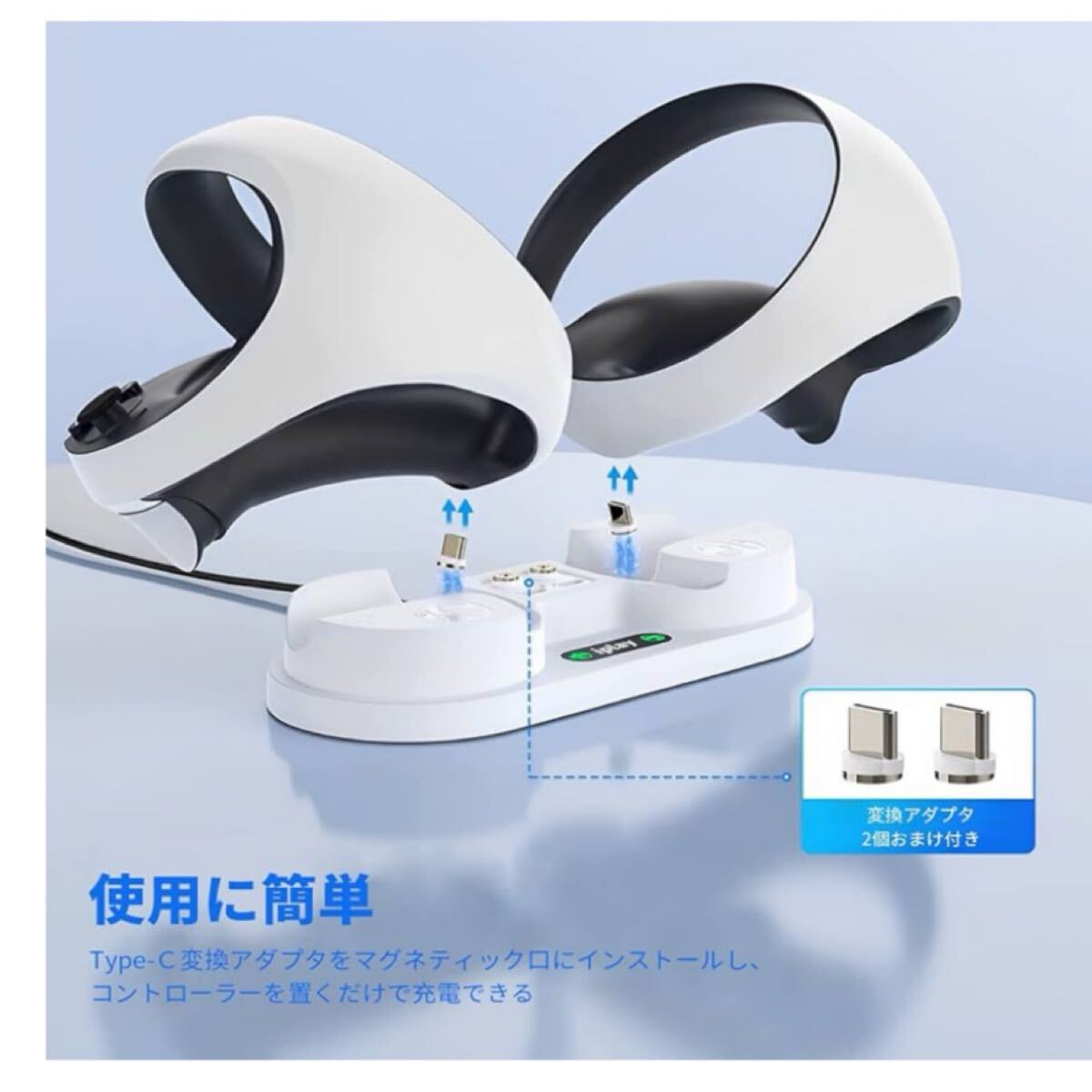 【パッケージ内容】PSVR2コントローラー充電スタンドx1、変換アダプタx4、充電ケーブルx1。