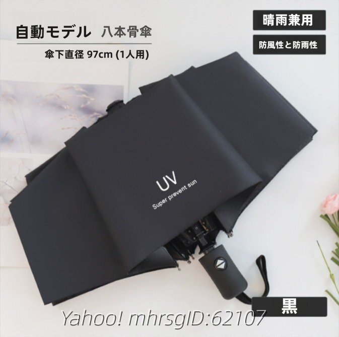 【新品未使用】 ワンタッチ 自動開閉 晴雨兼用 傘 ブラック 黒 折り畳み傘