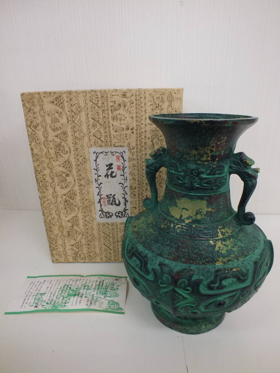 高岡銅器 美術工芸 啓裕銘 花瓶 花入 花器 華道具 伝統工芸 民芸 置物 飾壺 工芸品 記念印あり 激安1円スタート