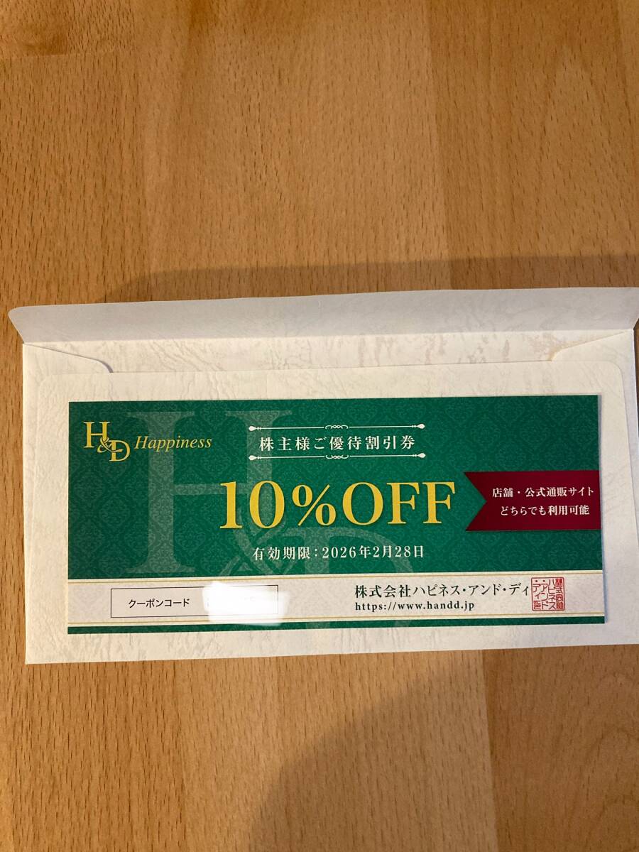 株式会社ハピネス・アンド・ディ 優待割引券 10%OFF 有効期限:2026年2月28日