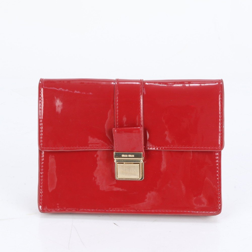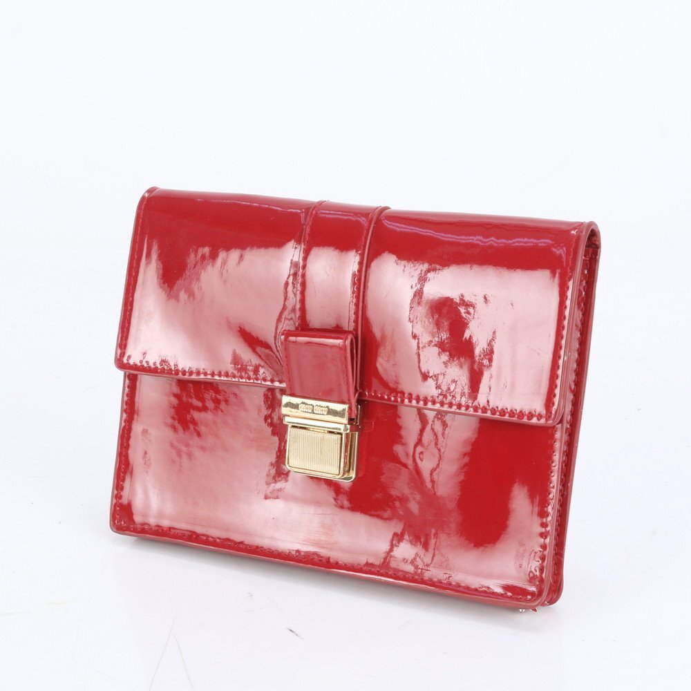 ■美品■ミュウミュウ■パテント レザー クラッチ バッグ ハンド セカンド ポーチ トート ゴールド 金具 レディース RUE CK26-1