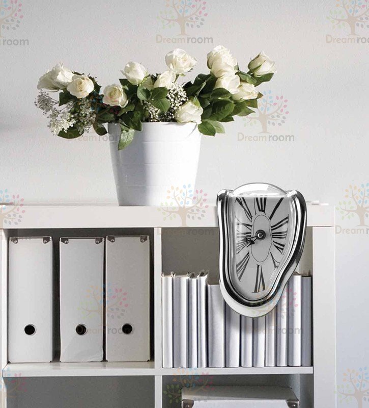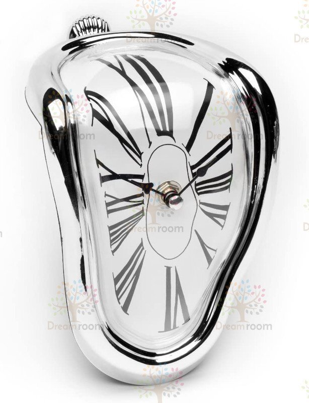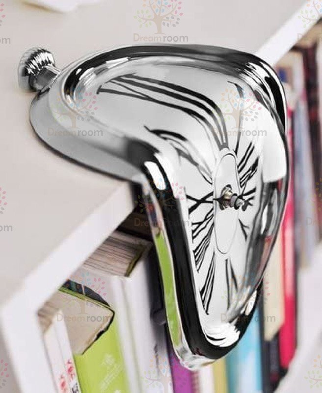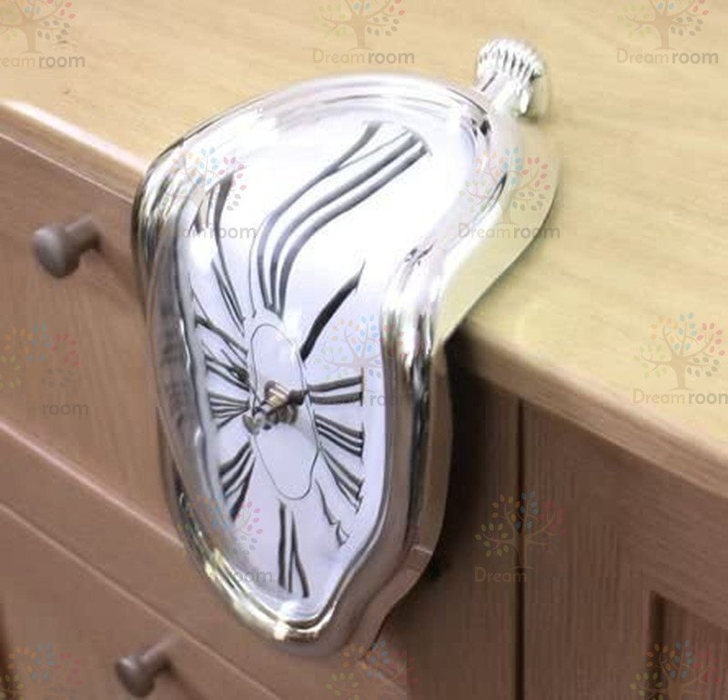 アートウォールクロックアメリカン雑貨 デザイン面白おもしろアンティーク ダリの柔らかい時計 インテリア置き時計 90度曲がったアートクロック(シルバー)