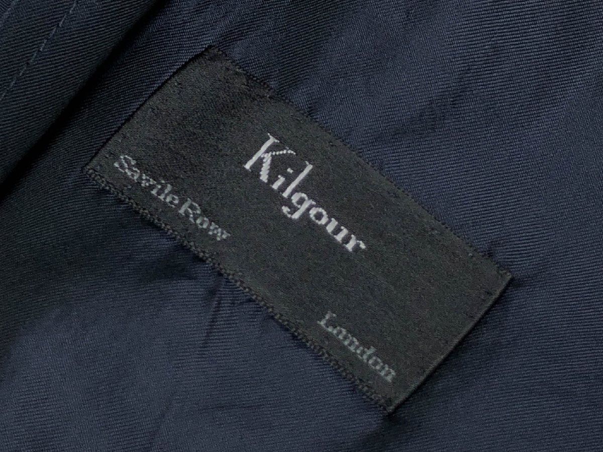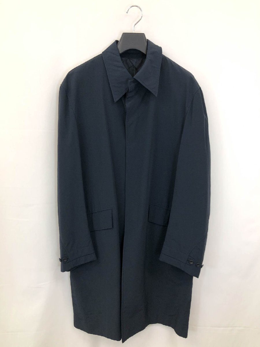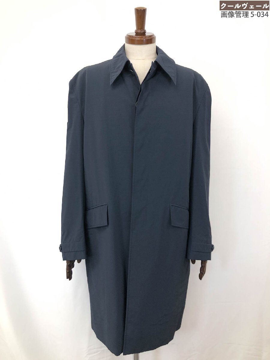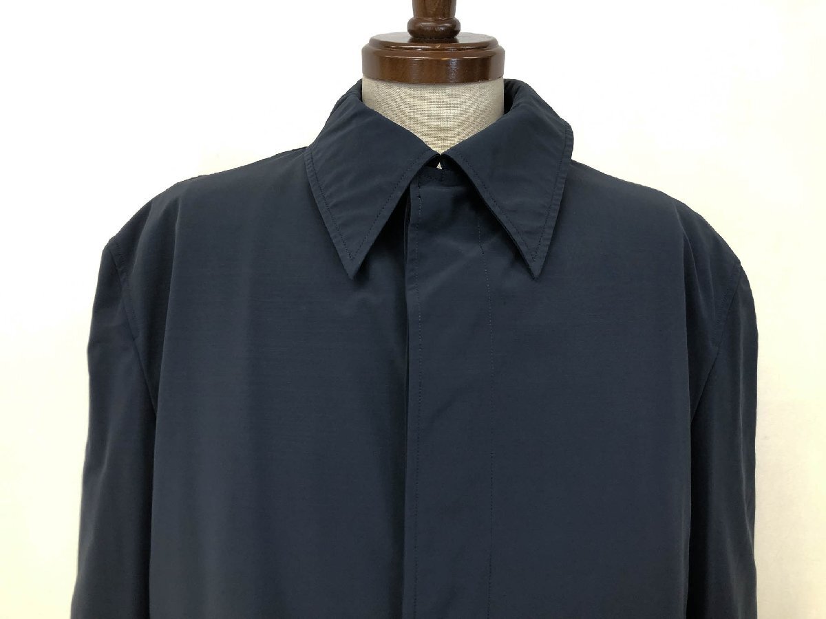 美品【キルガー Kilgour 】比翼ボタン ロングステンカラーコート (メンズ) size44/3 ややくすんだネイビー 微光沢 無地 ◇32MW4066◇