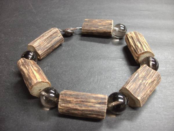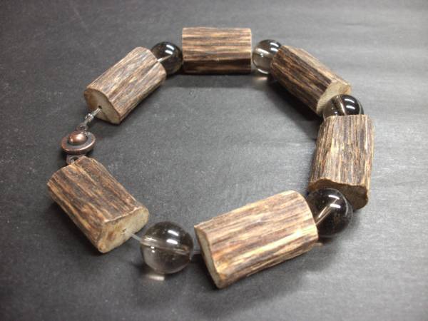 奈良の正倉院御物のランジャタイでよく知られている沈香を惜しげもなく贅沢に15gも使ってブレスレットを作ってみました。沈香を管に加工し間に10ミリのスモーキークォーツの玉を入れて管玉ブレスレットに仕上げました。えもいわれぬ芳しい香りをお楽しみ下さい。