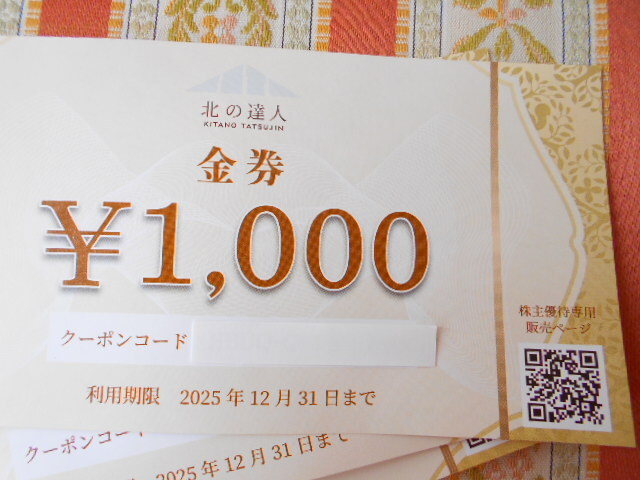 〇 北の快適工房 北の達人 金券 1000円×5枚 2025年12月31日まで 〇