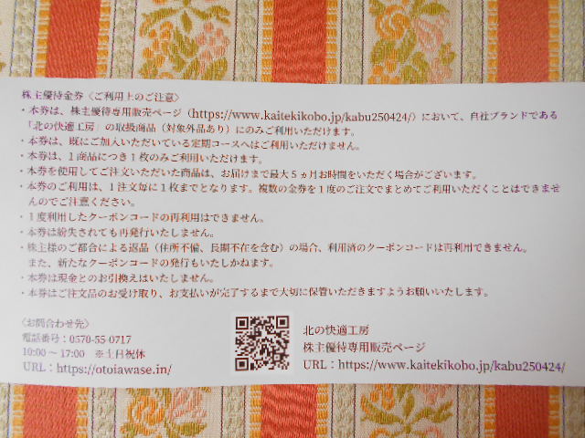 株主優待専用販売ページにて、1商品につき1枚のみご利用いただけます。
