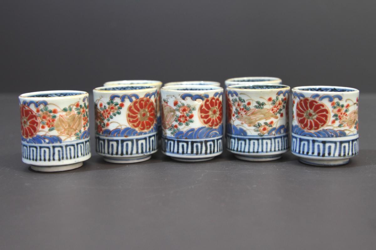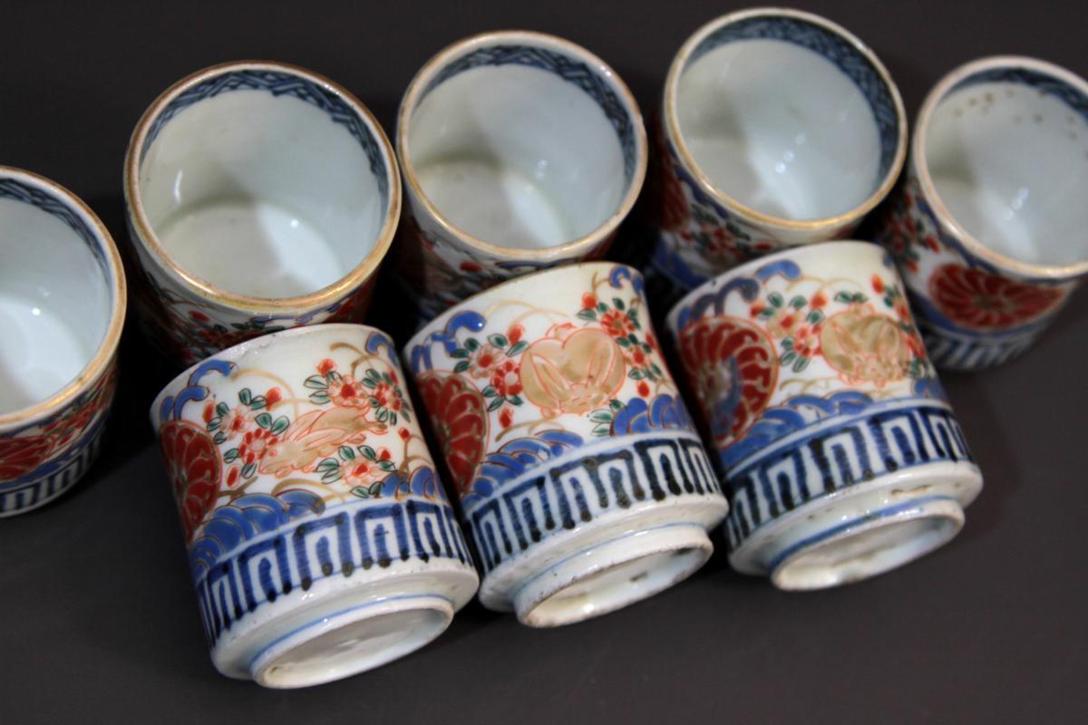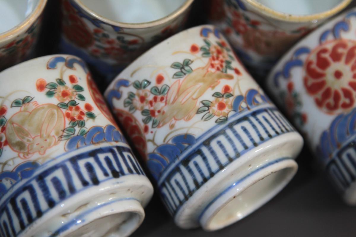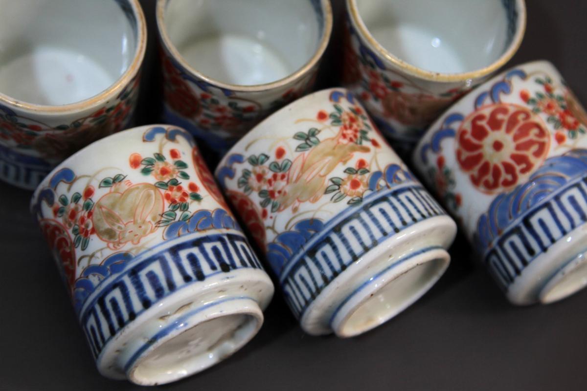 ★★★ 幕末期 伊万里 色絵 波に兎図 覗き 8客 ★★★