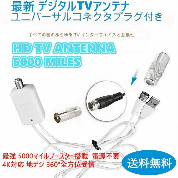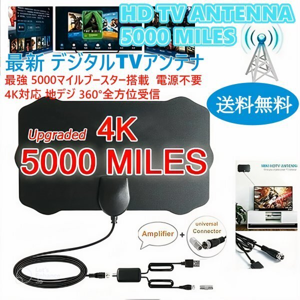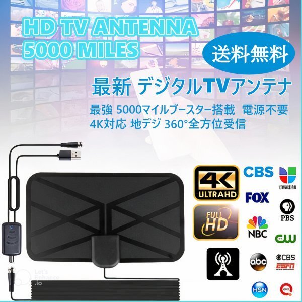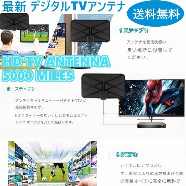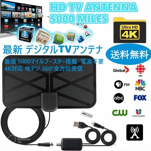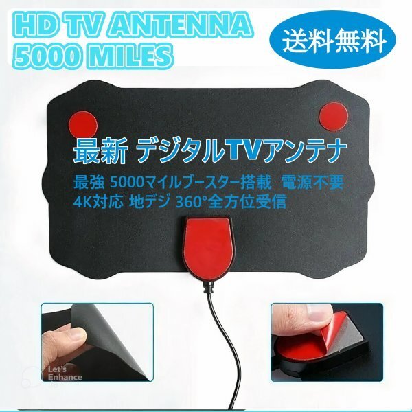 [送料無料] 最新 最強 デジタルTVアンテナ 電源不要 4K対応 最強 5000マイルブースター搭載,ケーブル付 薄型フラット地デジ 360°全方位受信 「最新 最強」 同じように見えてブースターが違います!