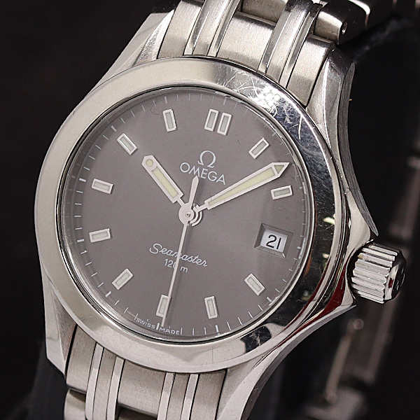 1円 保/箱付 稼働 オメガ シーマスター120m 2511.43 QZ グレー文字盤 レディース腕時計 5463700 10TLT MST
