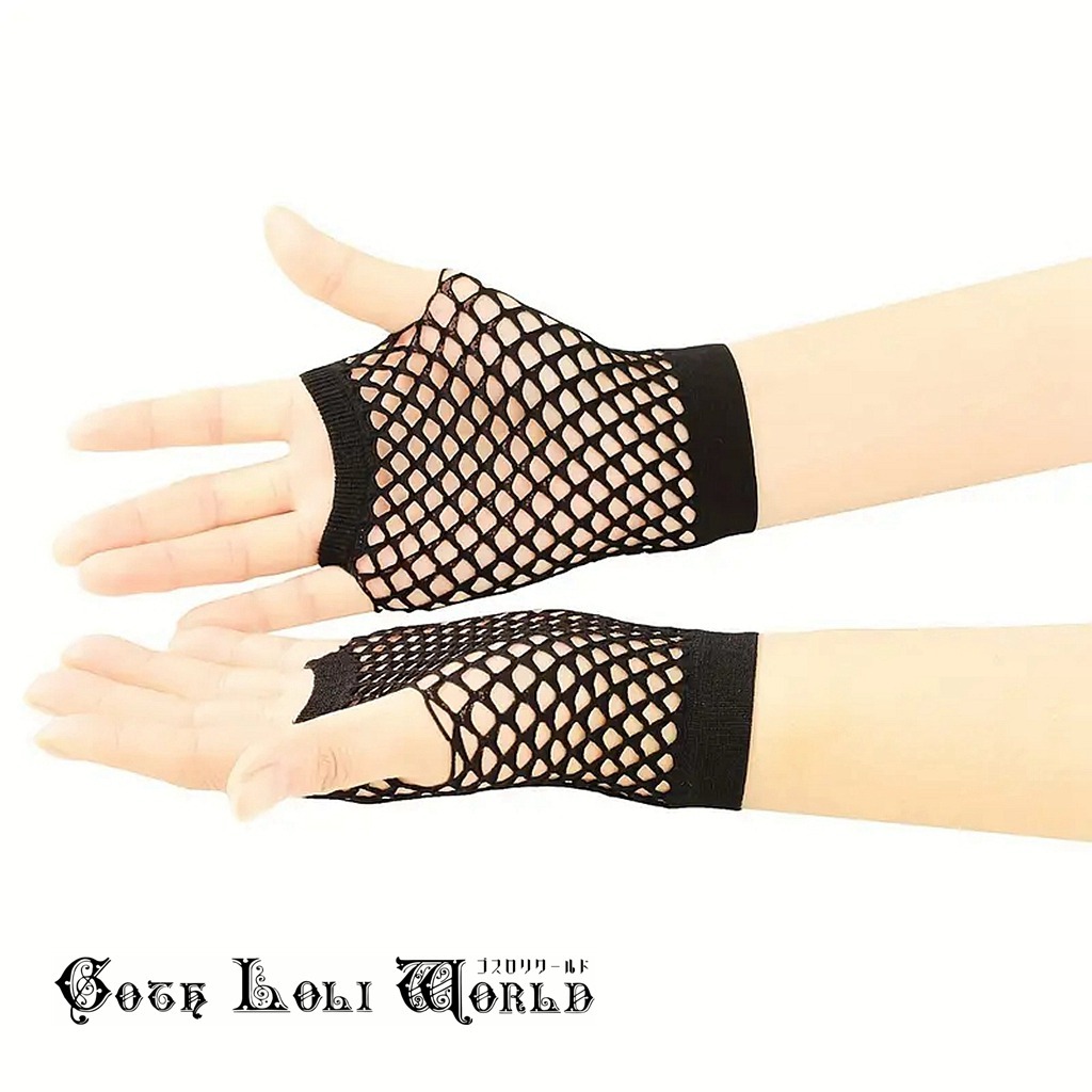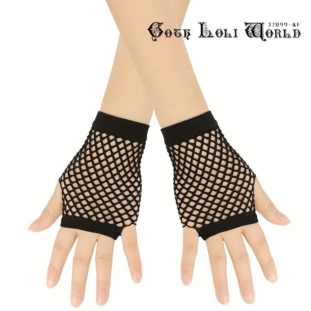 即納 CE-AGL009BK パンク ロック ファッション メッシュ ショート 手袋 地雷系 原宿系 ステージ 舞台 仮装 衣装