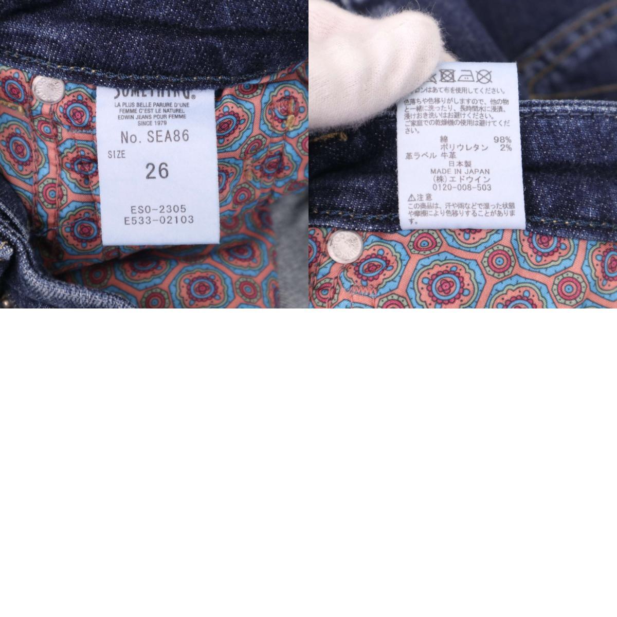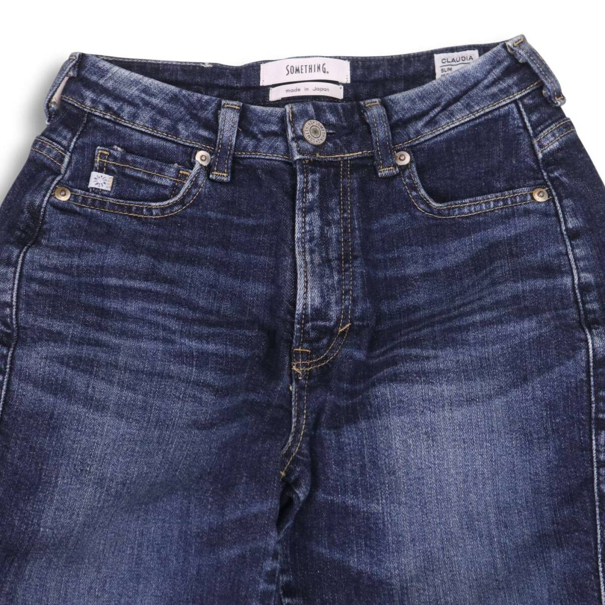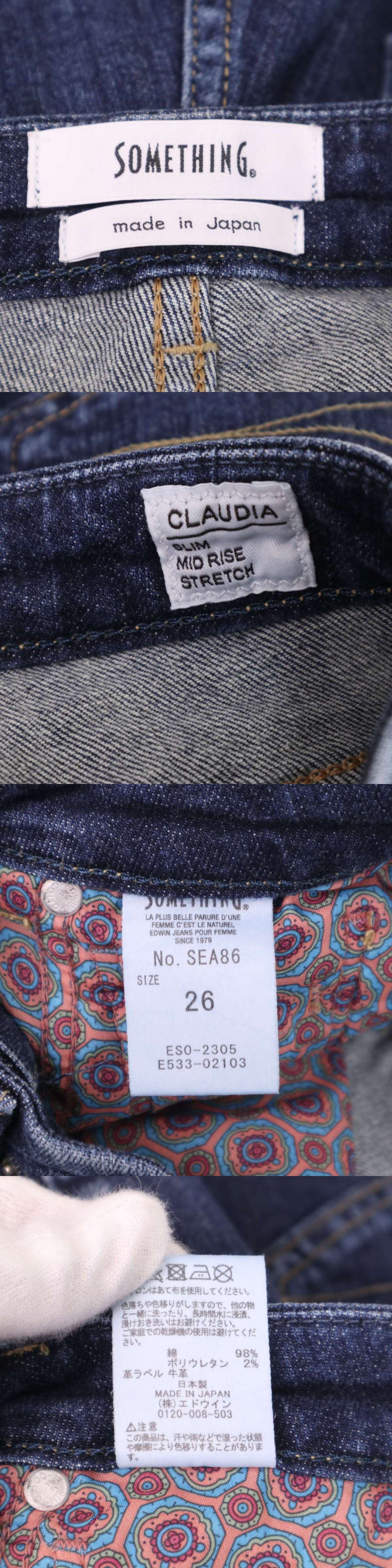 SOMETHING サムシング SEA86 CLAUDIA♪ USED加工 スリム ミッドライズ ストレッチ デニム パンツ ジーンズ Sz.26 レディース
