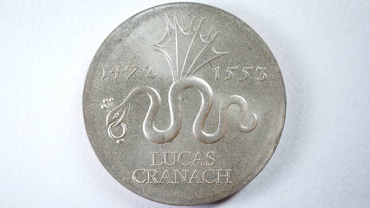 1972年 東ドイツ 20マルク記念銀貨 ルーカス クラナッハ生誕500年 silver625 20.9g