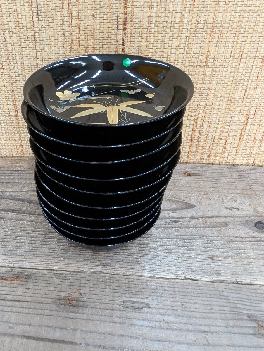 ②昭和 漆器 菓子碗 銘々皿★笹★梅 10客セット