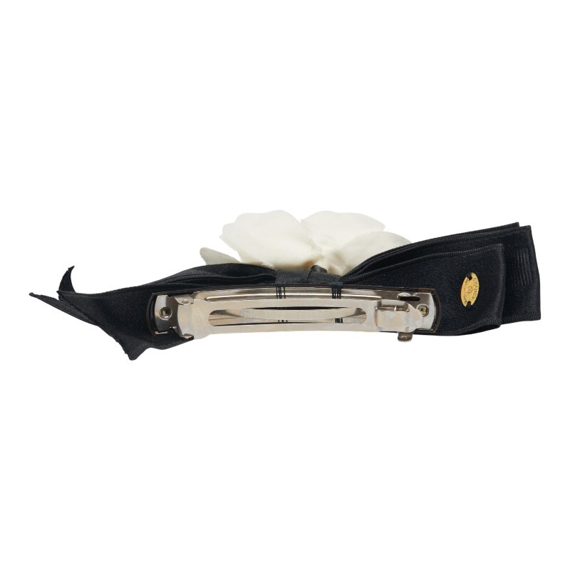 シャネル カメリア バレッタ ヘアアクセサリー ブラック ホワイト ナイロン メタル レディース CHANEL 【中古】