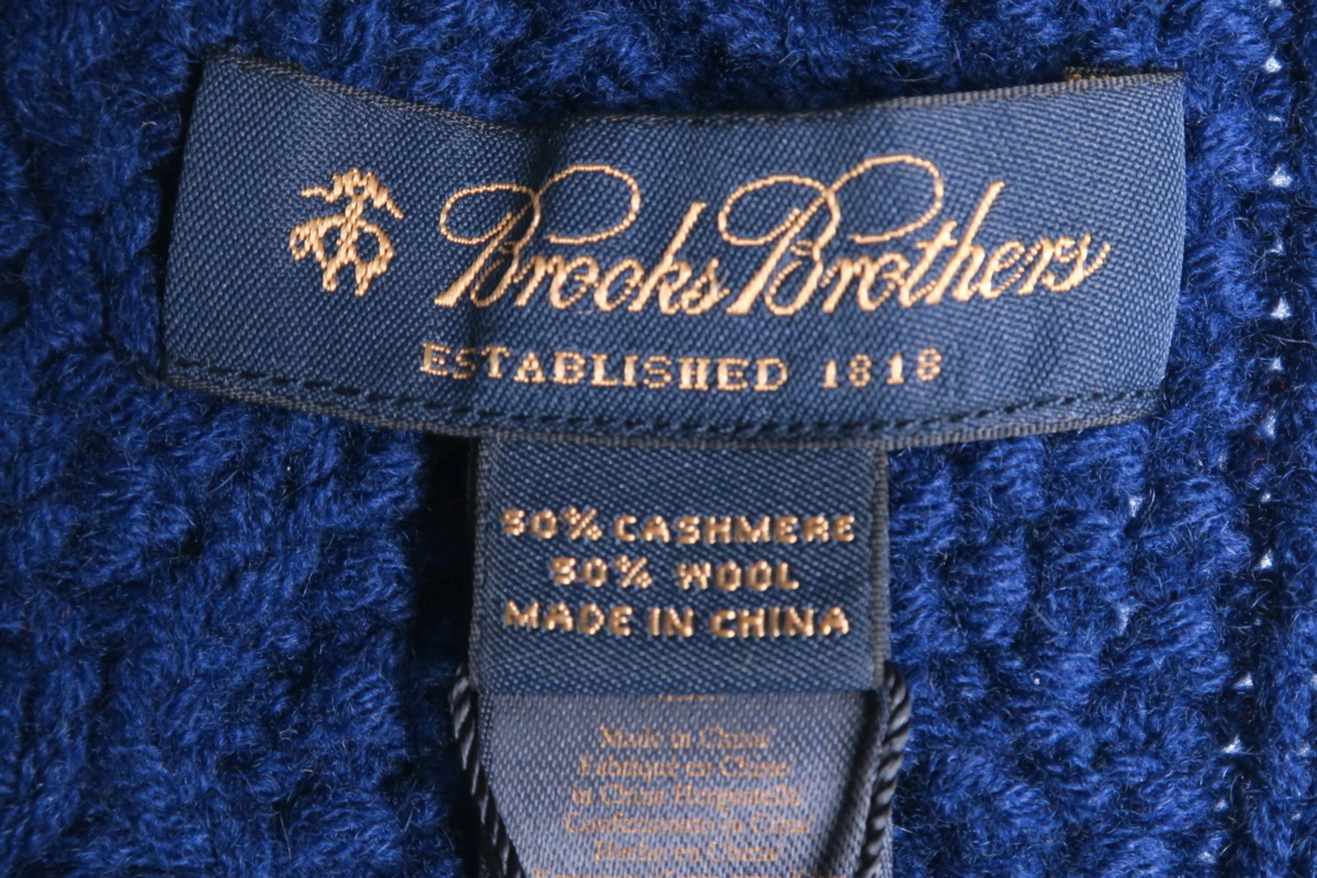【参考価格3万】BROOKS BROTHERS  カシミヤ×ウール混ケーブル編みフリンジマフラー/青/新品
