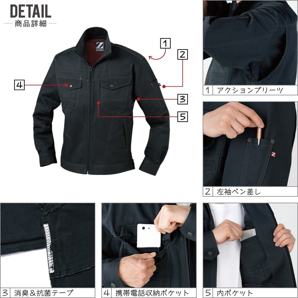 Z-DRAGON ジィードラゴン 秋冬 長袖 ジャンパー 綿100% 天然素材 71200 色:シックブラック サイズ:EL(3L)