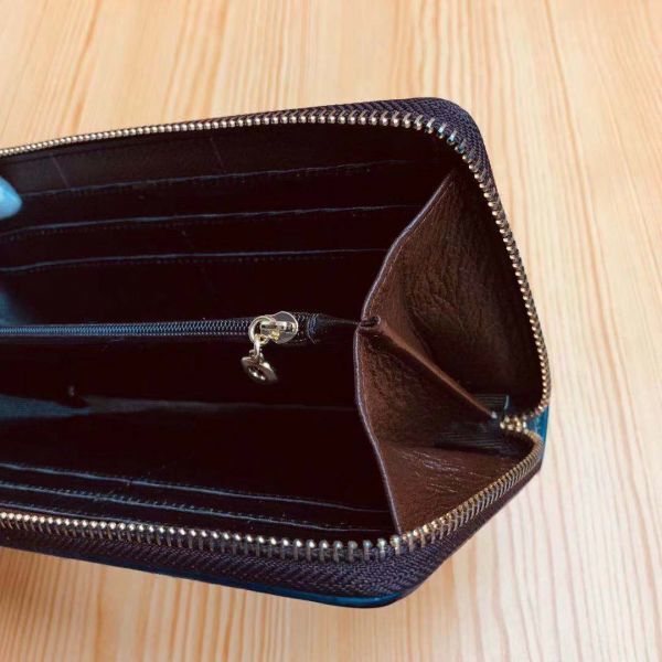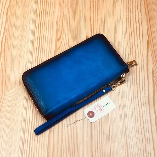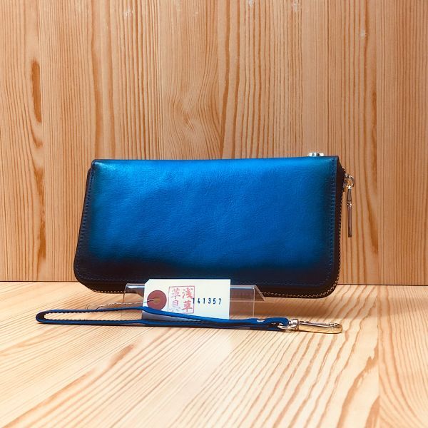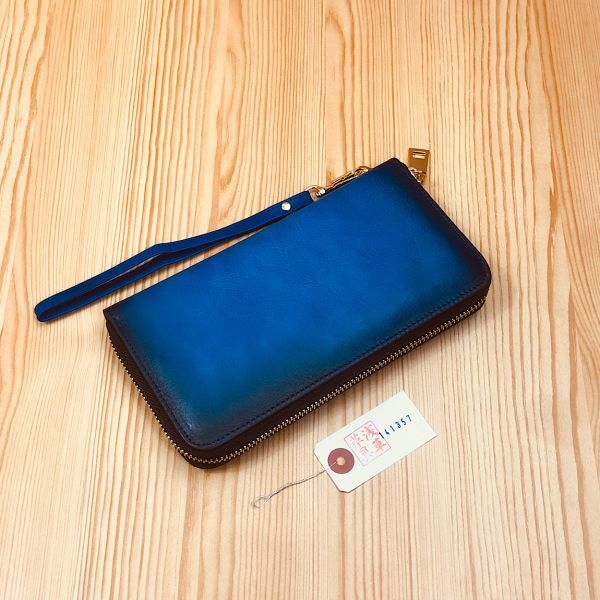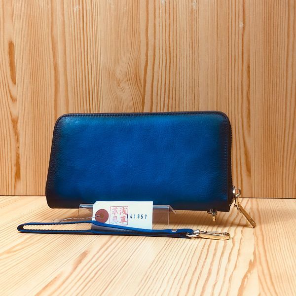 【浅草革具】メンズ 財布 長財布 ラウンドファスナー 牛革 ヌメ革 ハンドメイド ロングウォレット 1円 新品 未使用 一円 青
