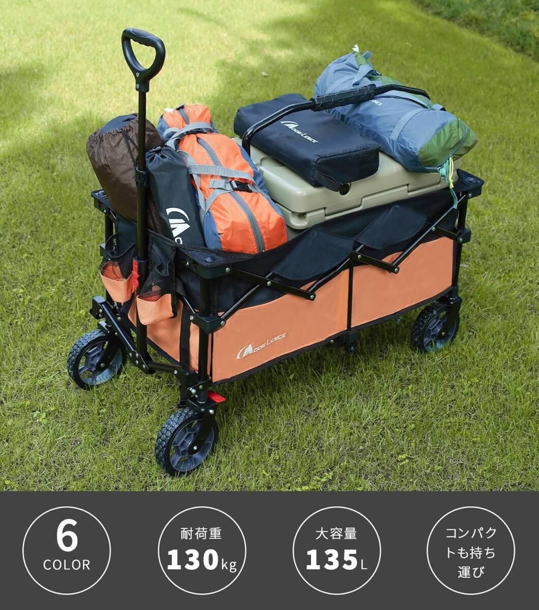 グレー色 MOON LENCE ブレーキ付き キャリーワゴン 折りたたみキャリーカート 超コンパクト大容量135L 耐荷重130kg