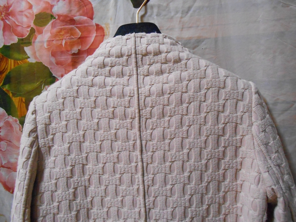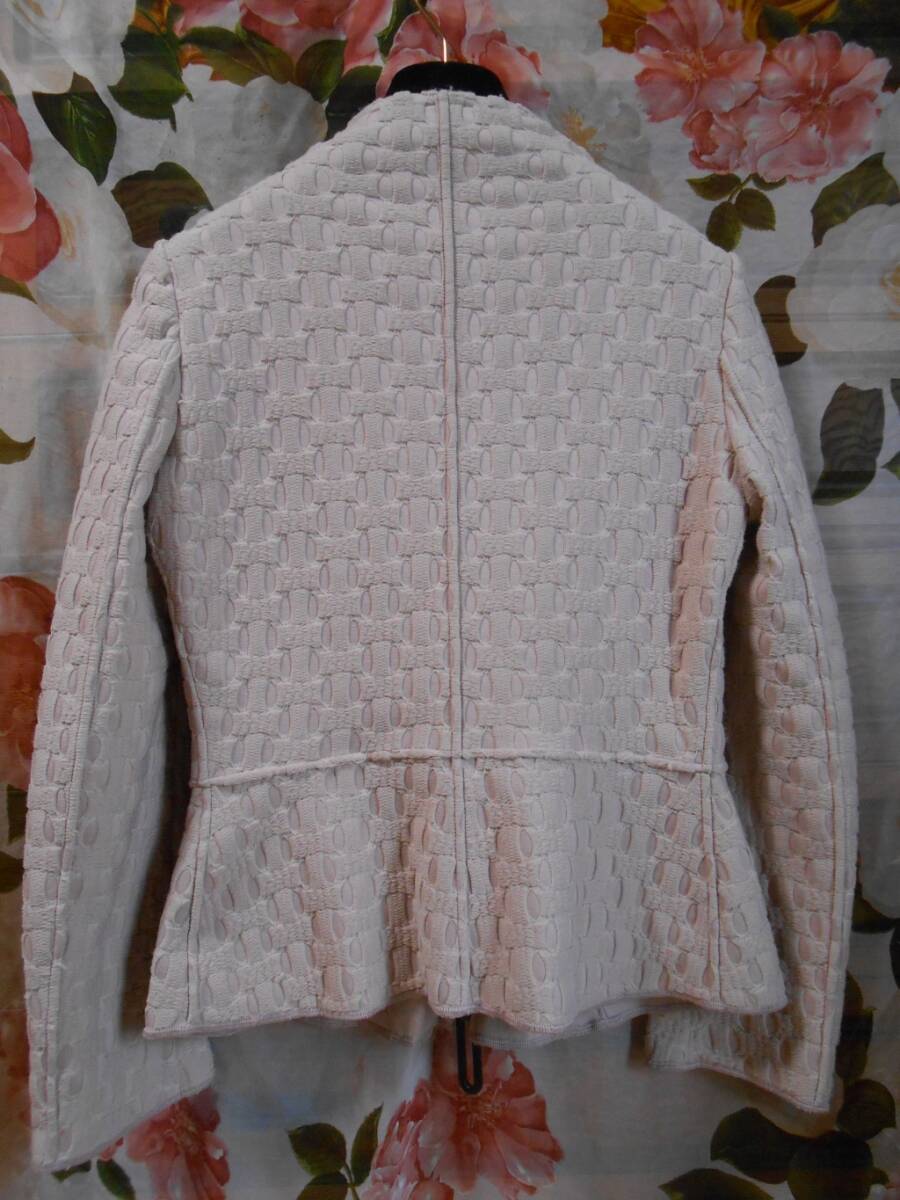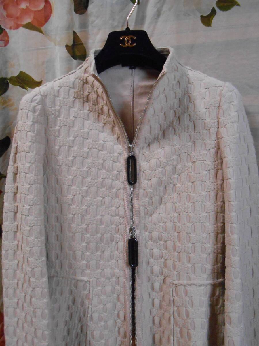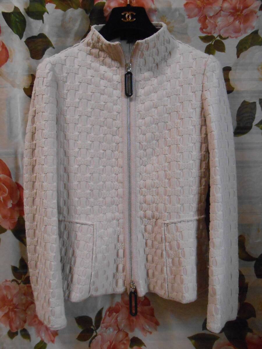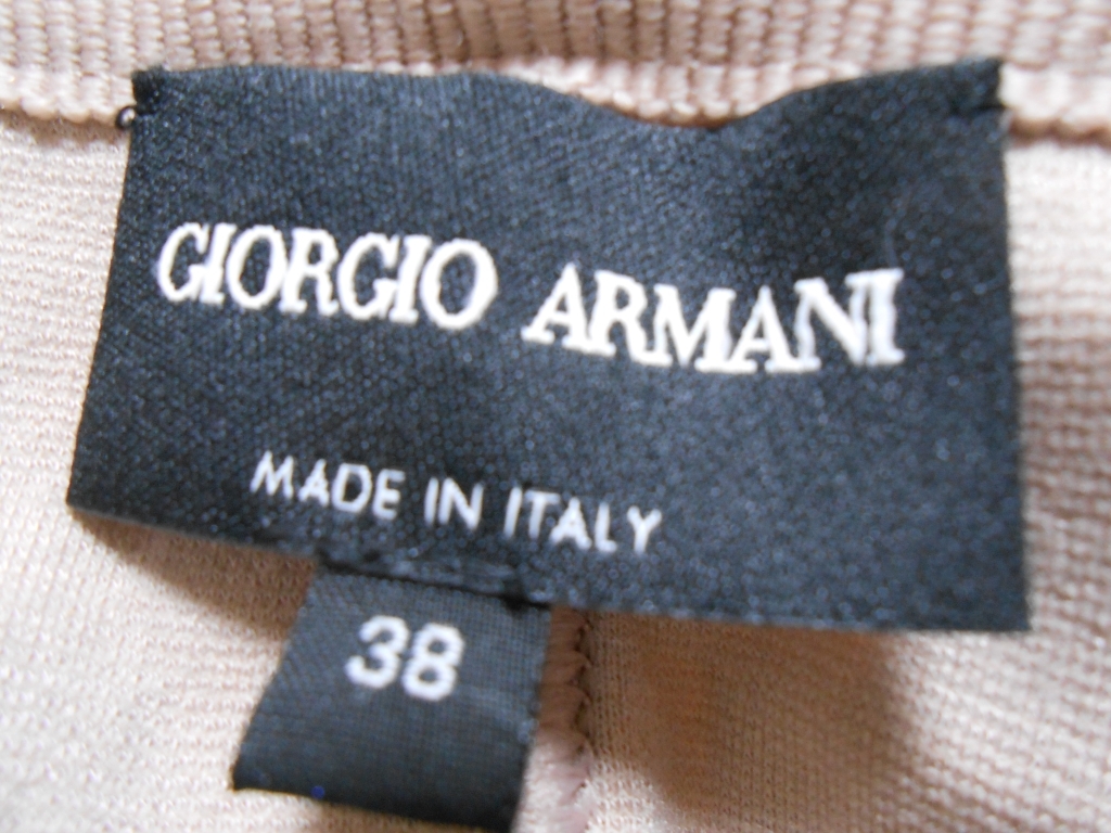 アルマーニの最高ライン、ジョルジオのブルゾン。素材表記はポリアミド100%。ほかにビスコーサなど。サイズ表記38。平置き採寸は肩幅34㌢、腕下身幅40㌢、着丈58㌢、袖丈58㌢。ピンクベージュカラーで織り方によるバイカラーイメージ。凹凸がある特別素材。最高級Lampo製ダブルジップ。プルは長円のホーン製を思わせる大型。イタリア製の正規品。参考価格は30万円。旅行、レジャーなどに最適。