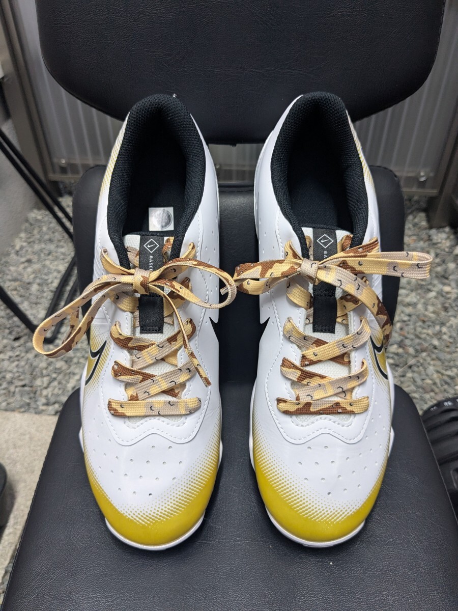 靴紐はイエローカモ柄に交換しておりますが、純正品の紐(黒)も同封します。