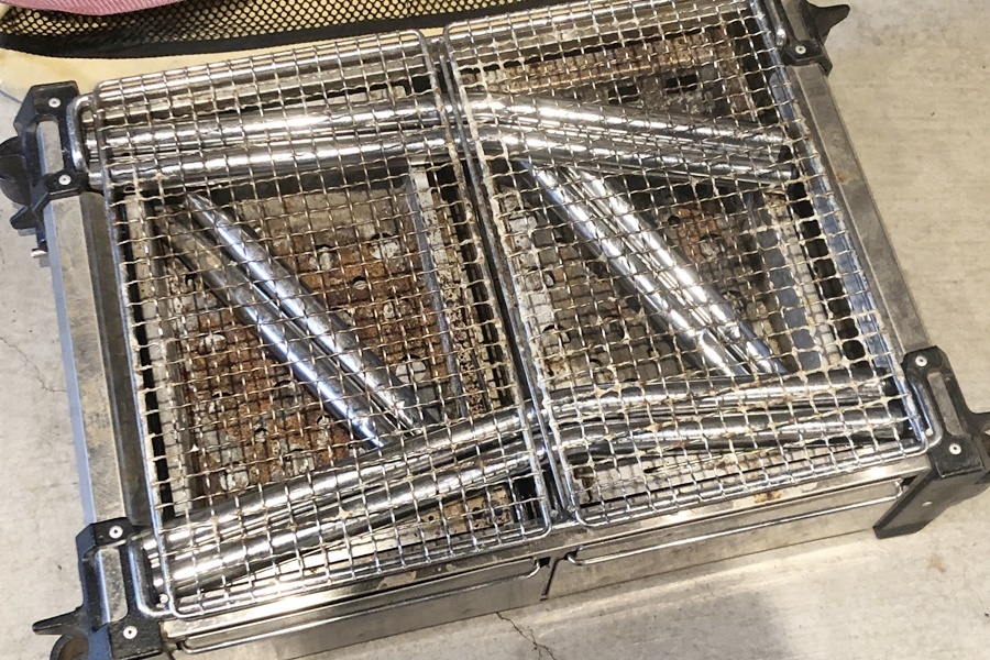本体・脚・鉄板・網すべてにサビがございます。