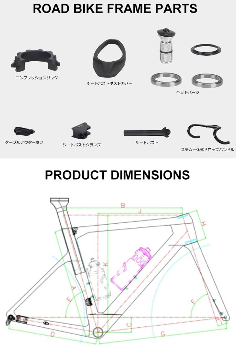 カーボンフレーム 10色 ロードバイクフレーム エアロフレーム RSシリーズ 自転車フレーム内蔵ワイヤー フォーク&ハンドル&シートポスト付