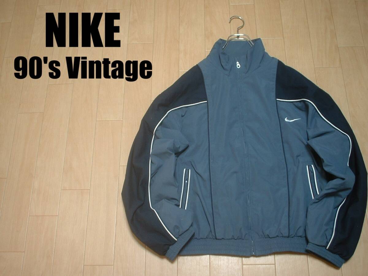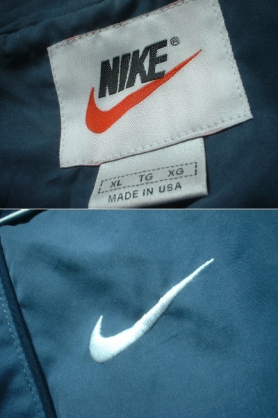 90sビンテージUSA製NIKEワンポイントスウッシュ刺繍ナイロンジャケット米国製XL正規ナイキ白タグウインドトラックジャージMADE IN USA