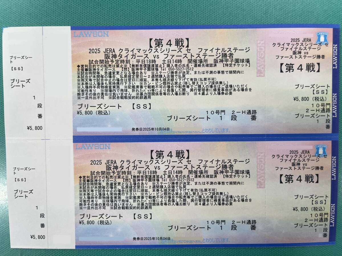 第4戦 10/18(土)ブリーズシート指定席 2枚 連番 通路近 阪神甲子園球場 クライマックスシリーズ 阪神タイガース