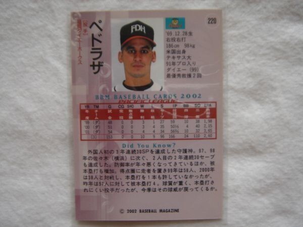 【BBM プロ野球カード 2002】No.220 ペドラザ 福岡ダイエーホークス【トレーディングカード トレカ ベースボールマガジン社】